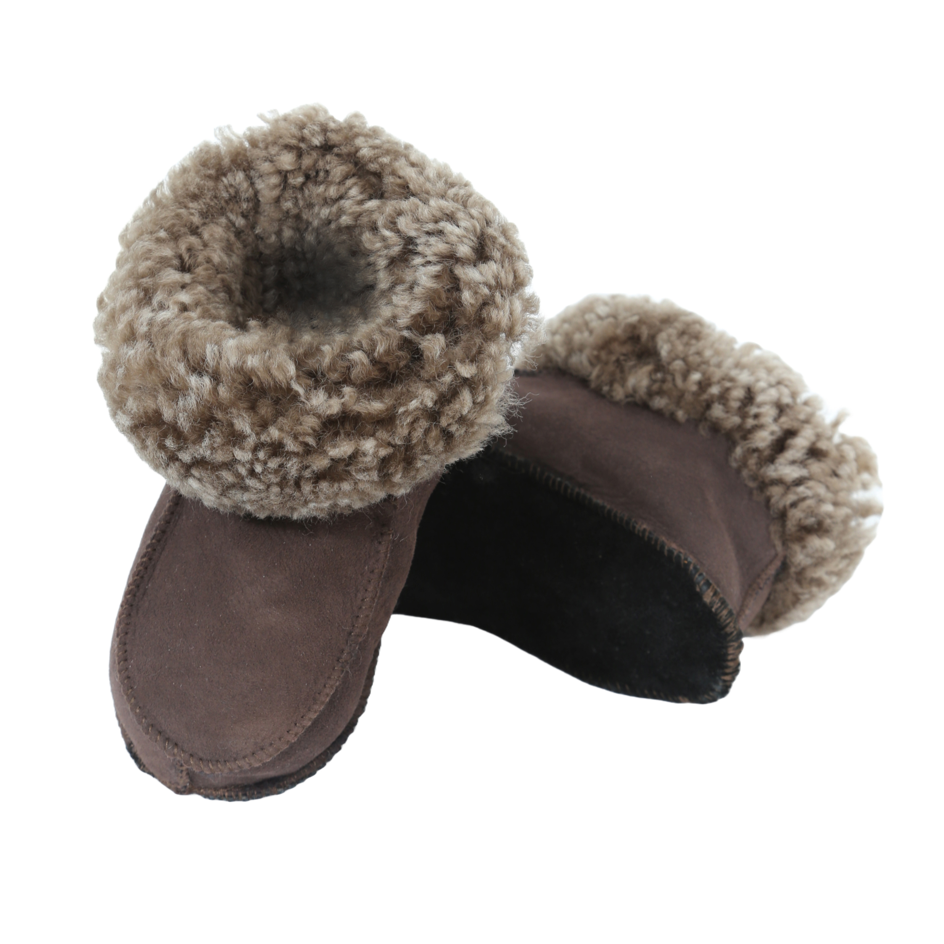 Vår klassiska modell är tillverkad av mjukt fårskinn och har en tjock, mysig krage. Varje par tillverkas för hand i vår verkstad av förstklassigt fårskinn.